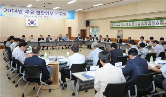 김제시는 지난 17일 상황실에서 현재 추진중인 현안사업 진행상황을 점검하여 사업추진에 박차를 가함으로써 민선5기를 내실 있게 마무리 하고, 민선6기를 역동적으로 맞이하기 위해 ‘2014년 주요 현안업무 보고회’를 개최했다.