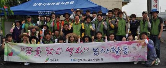 전북도 2014년 사회단체 보조사업으로 실시된 금번 봉사활동은 김제시자원봉사종합센터의 재능기부 자원연계를 통해 국립김제청소년농업생명체험센터 직원 40여명과 SK건설 직원, 마을주민 등이 참여한 가운데 실시됐다.