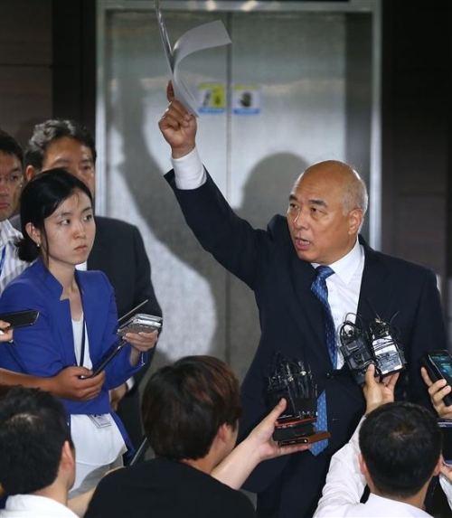 | ▲ 문창극 국무총리 후보자가 19일 오후 서울 종로구 정부서울청사 창성동 별관에서 퇴근하며 기자들에게 자신이 쓴 칼럼 등을 들어보이고 있다. 이날 문 후보자는 로비에서 선채로 20여 분간 자신을 둘러싼 친일사관 논란 등에 대해 해명했다. 연합뉴스 | ||