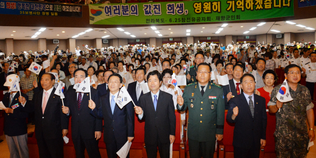 전북도와 6·25참전유공자회 전북지부, 전북 재향군인회는 이날 전북교육문화회관에서 기념 및 안보결의대회를 열었다.