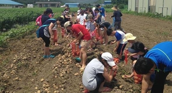 | ▲ 순창군 지정 농촌체험 휴양마을에서 체험 온 도시 가족들이 감자캐기 체험을 하고 있다. | ||