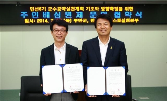 부안군은 한국매니페스토실천본부와 주민 중심의 공약실천계획 평가방식인 주민배심원제 정착을 위한 지원협약을 10일 군청 중회의실에서 체결했다고 밝혔다.