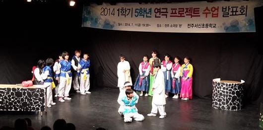 지난 11일 오후 7시30분 전주 소극장 판에서 열린 전주 서신초교(교장 이상석)의 연극 프로젝트 수업 발표회는 혁신학교의 안착이 열정적인 교사들에 의해 좌우된다는 것을 보여준 사례였다. 이날 5학년 학생들은 지난 5월부터 3개월 간 진행한 프로젝트 학습 일환으로 연극‘新데렐라’와 심청전과 춘향전을 각색한 퓨전 사극‘심향전’을 선보였다. 객석은 발 디딜 틈 없이 꽉 메워졌다.