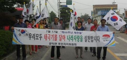 백구면(면장 신미란)은 각 가정마다 태극기 달기를 실천할 수 있도록 캠페인 및 앰프방송, 인터넷, 사람이 많이 몰리는 곳에 홍보문을 게첨하는 등 태극기 달기 분위기 조성에 앞장서고 있다. 이밖에도 관내 이곳저곳에서 제헌절을 앞두고 태극기 달기 운동이 전개 되고 있다.