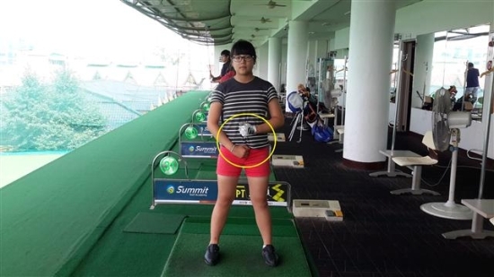 상체의 플러그가 하체의 콘센트에 꽂아질 수 있도록 상체를 구부리면 <사진2> 와 같이 만들어 진다. <사진2> 와 같이 플러그를 콘센트에 꽂게 되면 파워가 들어오게 되고, 이 파워는 골프스윙을 만드는 것으로 상상을 하면 더욱 도움이 된다.