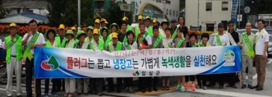 온실가스줄이기를 위해 임실군은 지난 1일 임실시장 등지에서 사회단체와 합동으로‘여름휴가철 녹색여행보내기’캠페인을 펼쳤다.