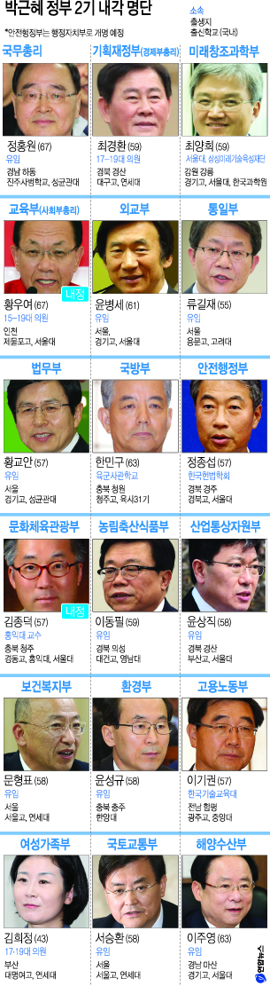 앞서 박 대통령은 교육부 장관과 문체부 장관이 공석인 상태에서 지난달 16일 2기 내각을 출범시켰다.