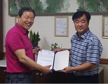 ▲ 고창 삼영종합건설 안연수 대표(오른쪽)와 원광대학교 건축공학과 소광호 교수가 산학협력 선도대학(LINC)육성사업 유치 및 추진을 위한 상호 협약을 체결하고 있다.