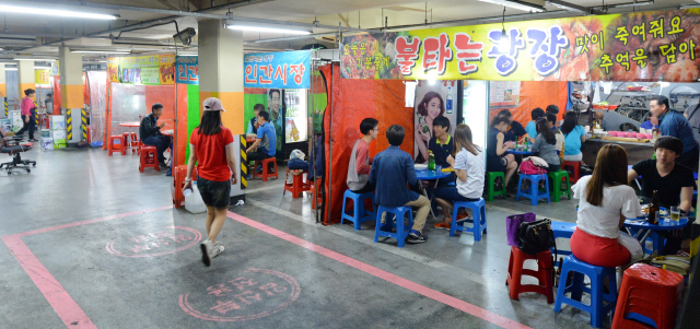 ▲ 전주 덕진광장 주차장에 있는 포장마차에서 시민들이 음식을 먹고 있다. 추성수기자 chss78@