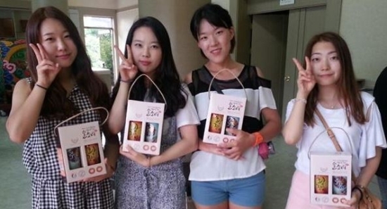 ▲ 남원관광 미션 투어에 참가한 대학생들이 선물을 받고 즐거워하고 있다.