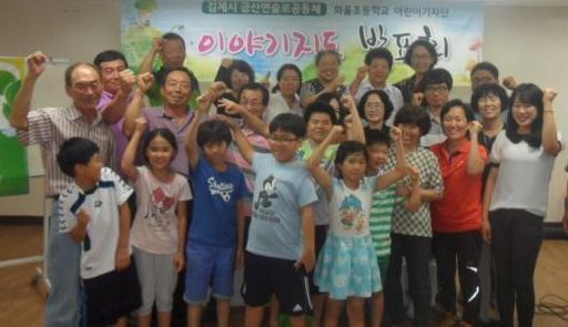 ▲ 김제시 금산면 슬로공동체운영위원회가 실시한 ‘마을 이야기 지도 발표회’에 참가한 어린이 기자단과 관계자들이 기념촬영을 하고 있다.