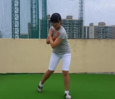 사진3은 똑같이 스윙하듯이 몸통을 백스윙 방향으로 회전하고, 회전하는 동안 오른발의 끝은 여전히 뒤꿈치를 들고 자세를 유지하여야 한다. 사진4는 피니쉬 방향으로 스윙하는 것으로 회전해준다. 오른 다리를 들고 있기에 체중이 타켓방향으로 진행되면 중심을 유지하지 못하고 넘어지게 된다.