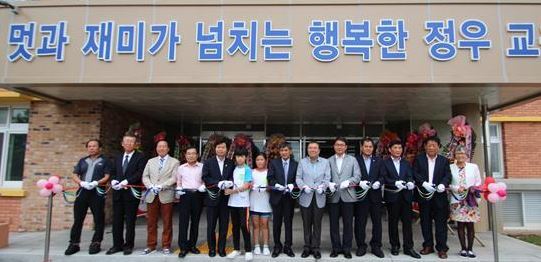 행사는 정우초등학교 재학생 10명으로 구성된 난타부 식전공연과 신축경과보고및 테이프 컷팅등으로 진행됐다.
