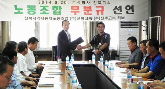 이에 황의종 전북고속 사장은 “노조의 결단에 박수를 보낸다”면서 “2010년 12월 노조 파업으로 야기된 노·사 불신이 이번 기회에 해소되길 바란다”고 말했다.