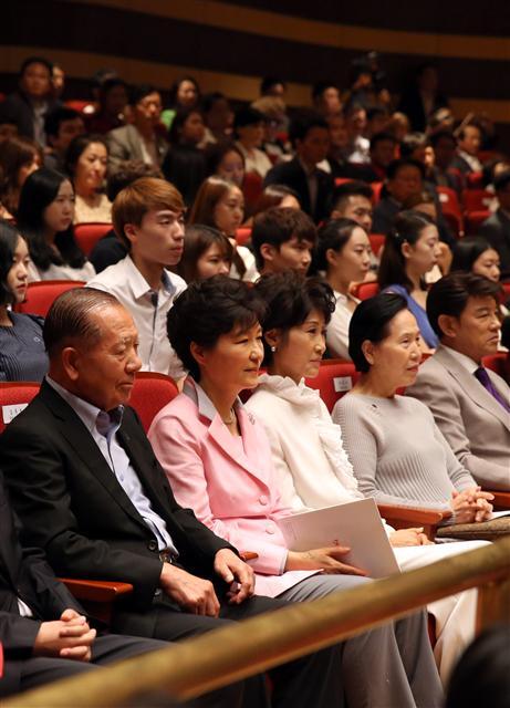박근혜 대통령은 27일 ‘문화가 있는 날’을 맞아 상명대 상명아트센터를 찾아 융복합 공연 ‘ONE DAY’를 관람했다.