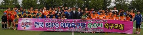 전국체전에 전북팀으로 출전하는 전북KSPO(국민체육진흥공단) 여자축구단이 28일 삼례여자중학교 인조잔디 구장을 찾아 축구 꿈나무들을 대상으로 유소녀 축구교실을 열었다.