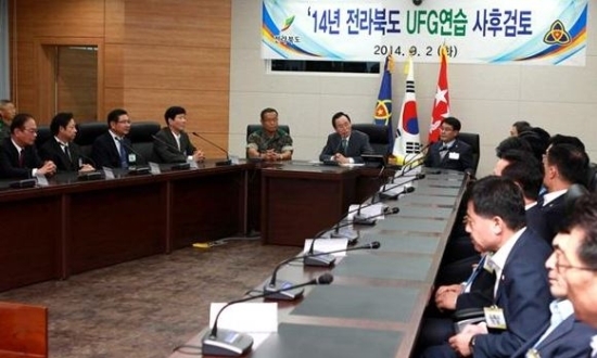이날 회의는 지난 18일부터 22일까지 실시한 UFG연습 사후검토 토론회로써 관련 영상물 시청과 통합방위지원본부 운용 등이 설명됐다.