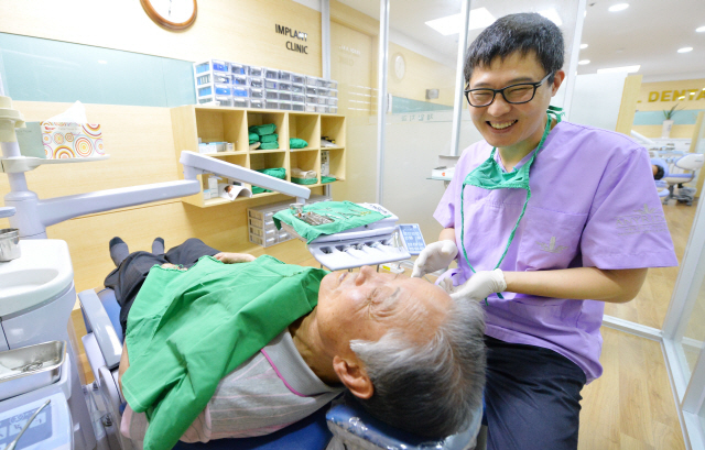 최동주(48) 제일치과의원 원장은 각각 두개씩, 모두 네개의 인공치아를 이식했다. 단단하고 음식물을 씹기 편한 새 치아를 얻은 노인들은 연신 최 원장에게 감사의 인사를 건넸다.