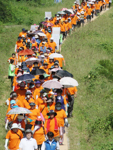 13일 전주천변 야외무대에서 열린 ‘동행·치매를 넘어’를 주제로 한 ‘’에서 시민들이 천변길을 걷고 있다.