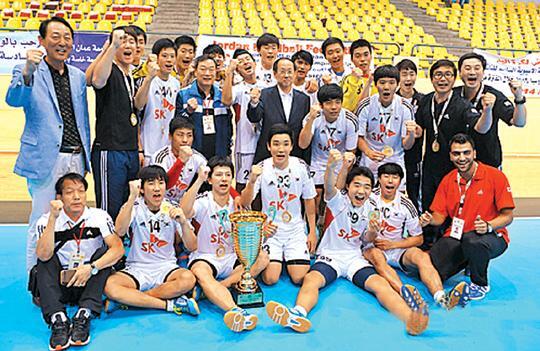 ▲ 16일 요르단 암만에서 열린 제6회 아시아청소년선수권대회 결승에서 카타르를 꺾고 9년만에 아시아 정상에 오른 한국 핸드볼 남자 청소년 국가대표팀이 기뻐하고 있다.
