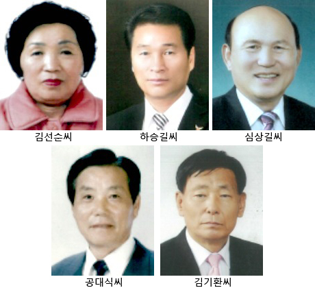 효열장 김선순씨 / 공익봉사장 하승길씨 / 산업근로장 심상길씨 / 애향장 공대식씨 / 문화체육장 김기환씨