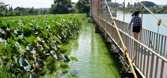 하지만 가까이 호수면을 들여다보면 짙은 녹조가 끼어있고, 때때로 심한 악취도 풍겼다.