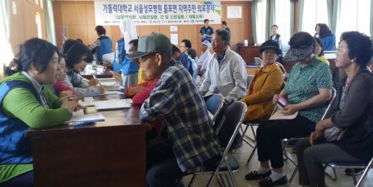 이번 의료봉사에는 봉사단장 소화기 내과 윤승규 교수를 포함한 45명의 교직원이 참여하여 200여명의 지역주민에게 의료봉사를 시행했다.