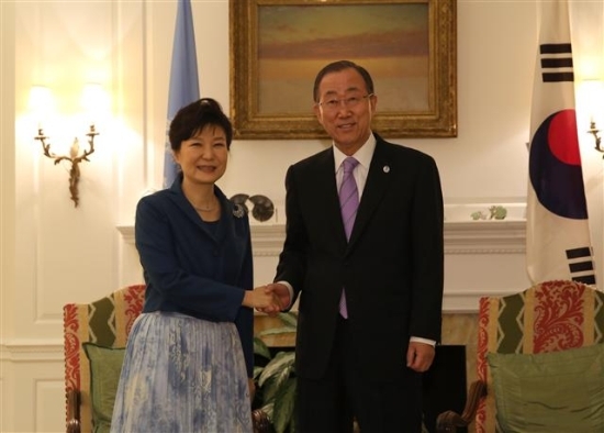 23일 유엔본부에서 열리는 유엔기후정상회의와 관련, 반 총장은 “내년 파리에서의 기후변화대응 국제적 조치의 합의를 끌어내기 위해 중요한 회의”라고 강조하며 박 대통령이 이 회의에서 기조연설을 하는 데 대해 사의를 표했다.