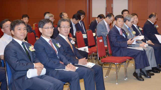 ▲ 29일 전북대학교 진수당에서 가인기념관 건립 추진위원회 발족식 및 가인 김병로 선생 기념 심포지엄이 개최됐다. 왼쪽부터 김승수 전주시장, 이창재 전주지검장, 박형남 전주지법원장 등이 심포지엄에 참석해 강연을 듣고 있다. 안봉주기자