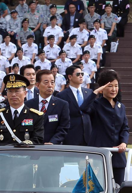 ▲ 열병하는 박근혜 대통령 박근혜 대통령이 1일 충남 계룡시 계룡대에서 열린 건군 66주년 국군의 날 기념식에 참석해 열병하고 있다. 연합뉴스