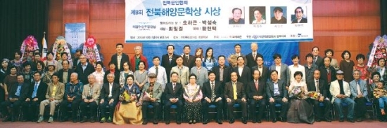(주)국제해운(대표 윤석정)이 주최하고 전북문인협회(회장 정군수)가 주관한 제8회 전북해양문학상 시상식이 1일 전북도청 대강당에서 열렸다. 해양수산부가 후원하는 전북해양문학상은 ‘찾아드리는 상’ 2명과, 작품공모부문 대상과 본상 2명에게 해양수산부장관상이 주어졌다.