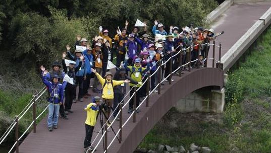 ▲ ‘한섬지 천리길 실크로드 탐방’ 참가자들이 섬진강길을 걷고 있다.
