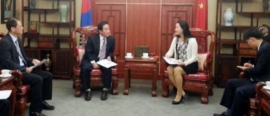 ▲ 노점홍 부안군 부군수가 지난 7일 중화인민공화국 중국주광주 총영사관의 장소매 부총사를 예방하고 부안차이나교육문화특구 조성계획을 설명, 협조 요청을 하고 있다.