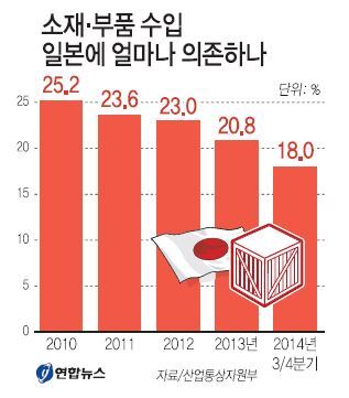 대일 수입의존도는 2010년 25.2%에서 2011년 23.6%, 2012년 23.0%, 2013년 20.8%로 낮아졌다.