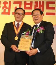 ▲ 김원철(왼쪽) 부안농협 조합장이 지난 10일 2014년 대한민국 최고브랜드 대상을 수상하고 상패를 들고 기념촬영을 하고 있다.