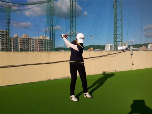 유연성과 능력에 따라 차이는 나겠지만 스윙을 상체는 많이 돌려주는 느낌과 하체는 견고하게 잡아주는 느낌의 스윙이 거리를 내는 스윙에 가장 필요한 요소일 것이다.