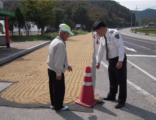수학기에 접어드는 이번 달 중순 이후부터는 도로변에서 농작물을 건조하는 행위가 증가될 것으로 예상되는 만큼 휴일 파출소 주차장의 건조장소 제공과 더불어 안내 입간판과 야간 반사지가 부착된 라바콘을 확보해 순찰중 농작물 건조 장소 발견시 이를 제공하는 등 사고예방에 주력하고 있다.