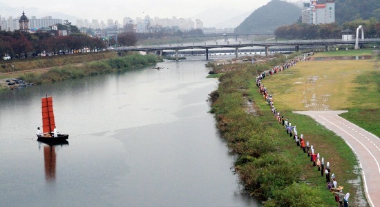 시는 지난 7일부터 춘향교에서 승월교까지 500m 구간에서 처음으로 허수아비 패션쇼를 개최한데 이어, 20일 승월교와 춘향교 중간지점에 소금을 싣고 운행하는 나룻배를 진수했다.