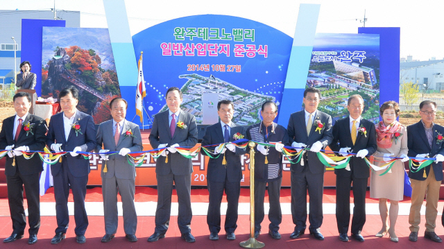 완주군은 27일 봉동읍 장구리 일대에 조성된 완주 테크노밸리 일반산업단지 현지에서 송하진 지사와 박성일 군수 정성모 군의회의장 김택수 전주상공회의소 회장 윤덕임 완주교육장 임정엽 전 완주군수를 비롯 기업체 관계자 공단 근로자 지역주민 등 600여명이 참석한 가운데 준공식을 가졌다.