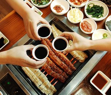 ▲ 고창 풍천장어와 복분자주.