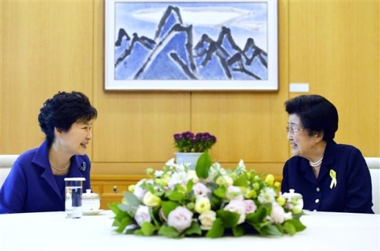 박근혜 대통령은 28일 오후 청와대에서 취임 후 처음으로 김대중 전 대통령의 부인 이희호 여사를 접견했다.