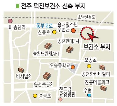 전주 덕진구보건소 신축 장소로 송천동2가 솔내청소년수련관 옆 부지가 최종 선정됐다.