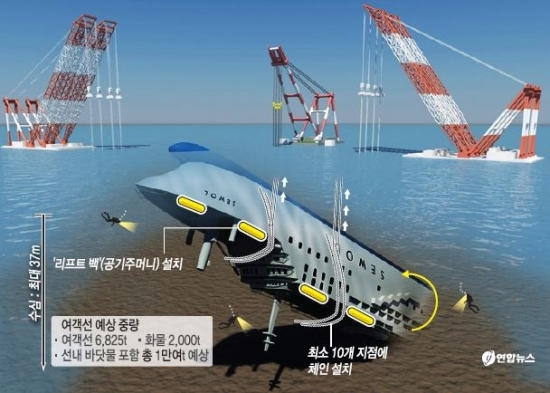 문 실장은 이날 국회 예산결산특별위원회 전체회의에서 이같이 답한 뒤 “해상 상황과 기상 여건에 따라 얼마든지 비용이 늘어날 수 있다고 본다”고 밝혔다. 인양 기간에 대해선 “이르면 1년 정도 걸린다고 전문가들이 이야기한다”고 전했다.