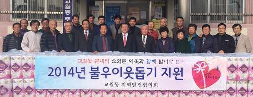 박상문 교월동장은 “홍종식 지역발전협의회장은 대한민국 수문명가로 알려진 금전기업사(주) 대표로, 지역발전과 지역주민 화합을 위해 매년 사비 1000만원씩을 내 놓고 있는 등 지역사랑이 남다른 분이다”면서 “매년 관내 소외계층들에게 사랑과 희망을 전해주고 있는 지역발전협의회 회원들께 지역주민을 대표하여 진심으로 감사드린다”고 말했다.