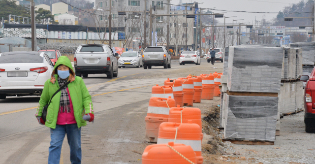 ▲ 3일 전주대 옛 정문 인근 삼거리에서 진행되고 있는 효자로 확장공사가 지연되고 있어 운전자와 시민들이 통행에 불편을 겪고 있다. 추성수기자chss78@