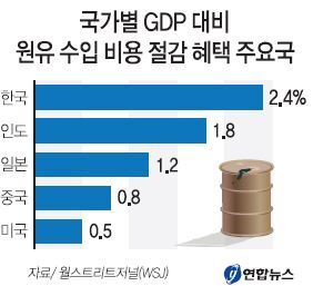 저유가로 말미암아 우리나라가 국내총생산(GDP)의 2.4%에 이르는 원유 수입 비용을 절감할 수 있을 것으로 전망됐다.