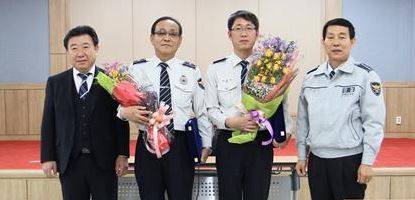 김제경찰서(서장 방춘원)는 지난 16일 강당에서 본서 간부 및 지구대·파출소장, 직원 등 70여명이 참석한 가운데 ‘스마트 김제경찰’로 선정된 최병길(경위) 청하치안센터장과 박병석(경사) 경무과 직원에 대한 표창을 수여했다.