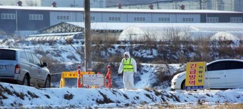 ▲ 17일 충남 천안 수신면의 한 돼지농장에서 구제역이 발생한 가운데 방역요원이 긴급 방역 작업을 위해 차량을 통제하고 있다. 연합뉴스