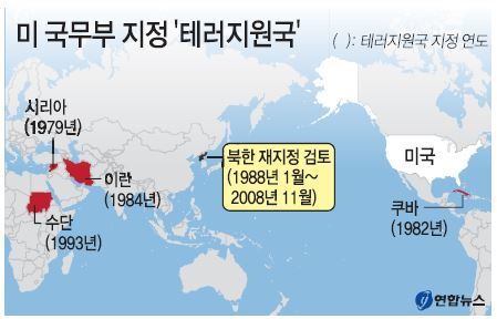 미국 국무부가 테러지원국 명단을 작성한 것은 1979년부터다. 그해 제정된 수출관리법 6항을 준거법으로 무기수출통제법(1976년) 40항과 외국원조법(1961년) 620항을 적용해 테러 활동과 관련된 국가들을 ‘블랙리스트’에 올린 것이다. 뉴스