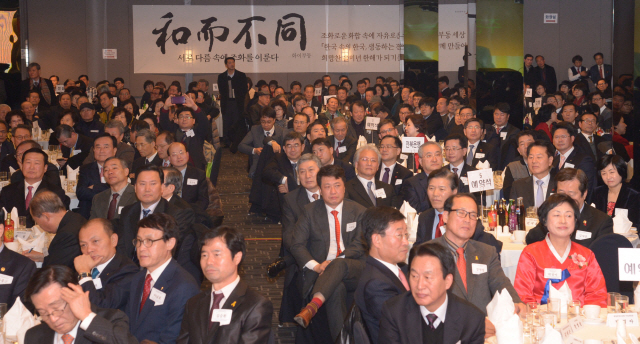 ‘2015년 재경전북도민 신년인사회’에 참석한 각계 각층의 출향 인사들이 주최자의 인사말을 경청하고 있다.